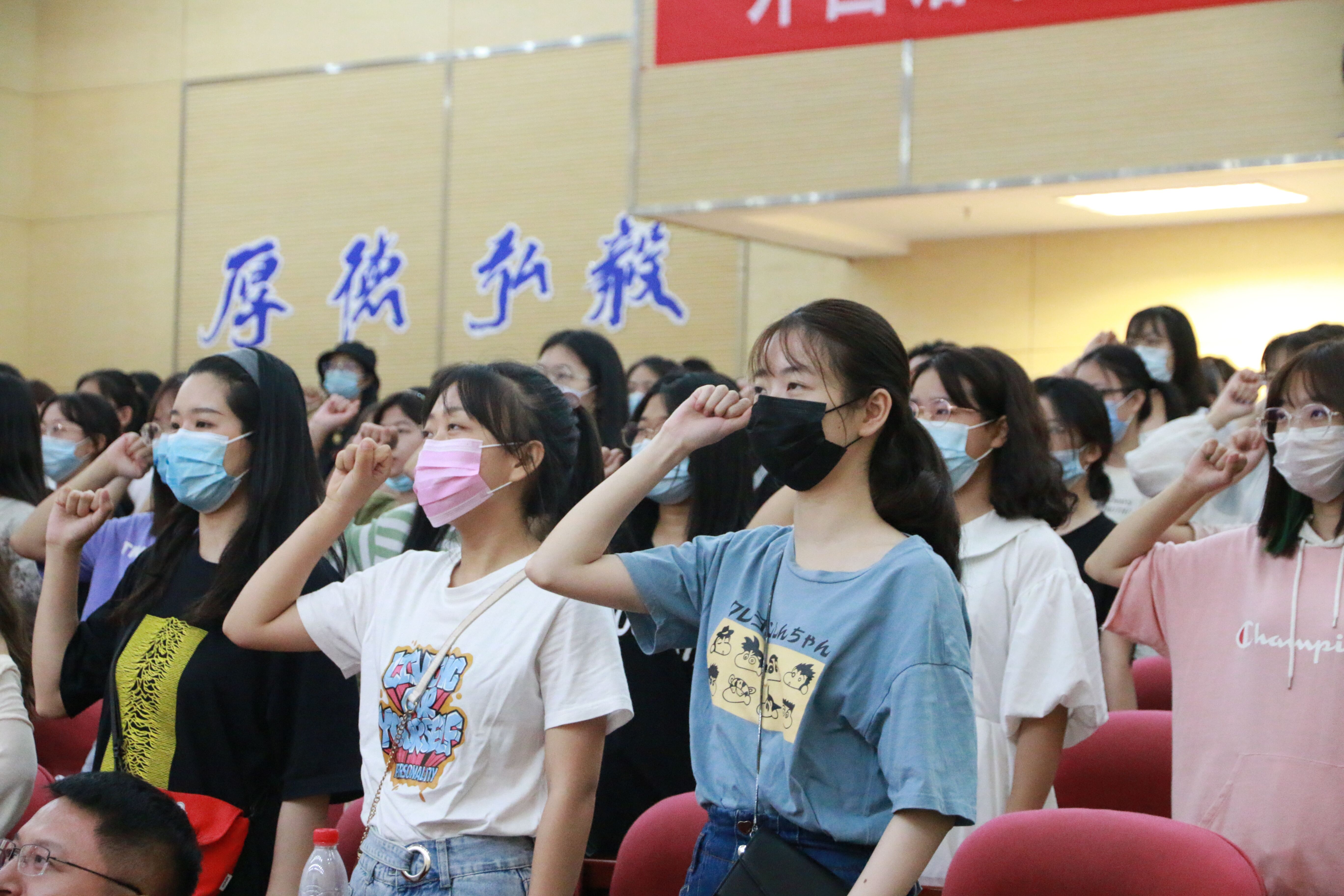 大会在雄壮的国歌声中开始。院党委陈晓波书记作动员讲话。陈晓波书记代表学院全体师生欢迎258位新成员加入南邮外院大家族,对大家开始大学学业表示衷心的祝贺!陈书记指出,在党中央的坚强领导下,广大医务工作者、疾控工作人员等为抗疫斗争作出了重大贡献,是我们顺利步入大学学习的重要保障,我们要深入学习“生命至上、举国同心、舍生忘死、尊重科学、命运与共”伟大抗疫精神。全体新生以热烈的掌声向抗疫英雄表达了敬意。陈书记指出,红色校史是南邮人最宝贵的精神财富,也是“信达天下、自强不息”南邮精神的起点,我们要广泛传唱校歌《信达天下》。陈书记介绍了南邮以及外国语学院雄厚的办学实力和立德树人丰硕成果,希望广大同学为自己是南邮人、南邮外院人感到自豪,勉励大家做具有家国情怀、国际视野的南邮人。“天行健,君子以自强不息”,动员讲话最后,陈书记希望广大新生把握时代期许,感悟南邮精神,领略专业真谛,强化自身发展,努力成长为德智体美劳全面发展的优秀人才,在民族复兴的伟业中成就自己的梦想,贡献自己的力量。