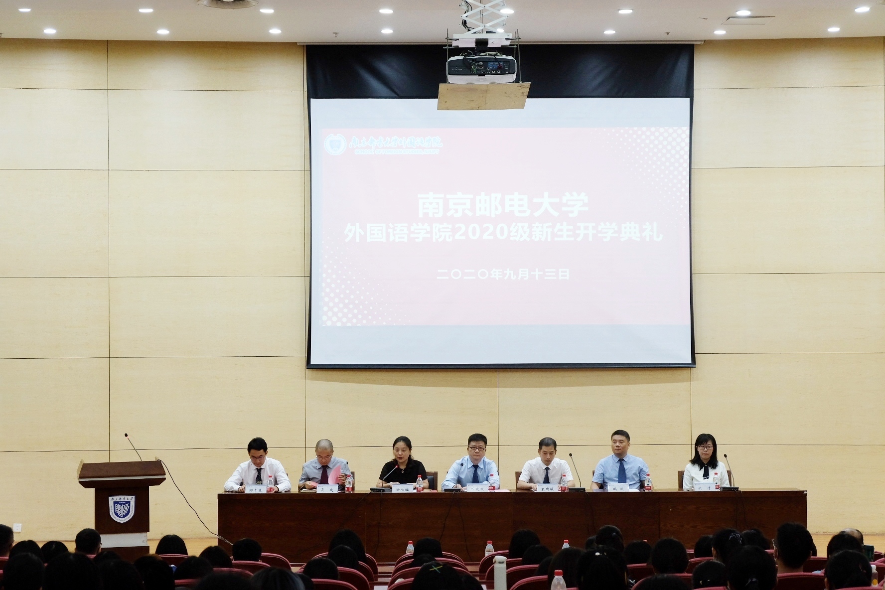 9月13日下午,南京邮电大学外国语学院2020级新生开学典礼在仙林校区图书馆四楼报告厅举行。院党委书记陈晓波、院长袁周敏、全体院领导、各系部主任、全体学工干部出席大会。会议由院党委副书记、副院长徐欣娅主持。