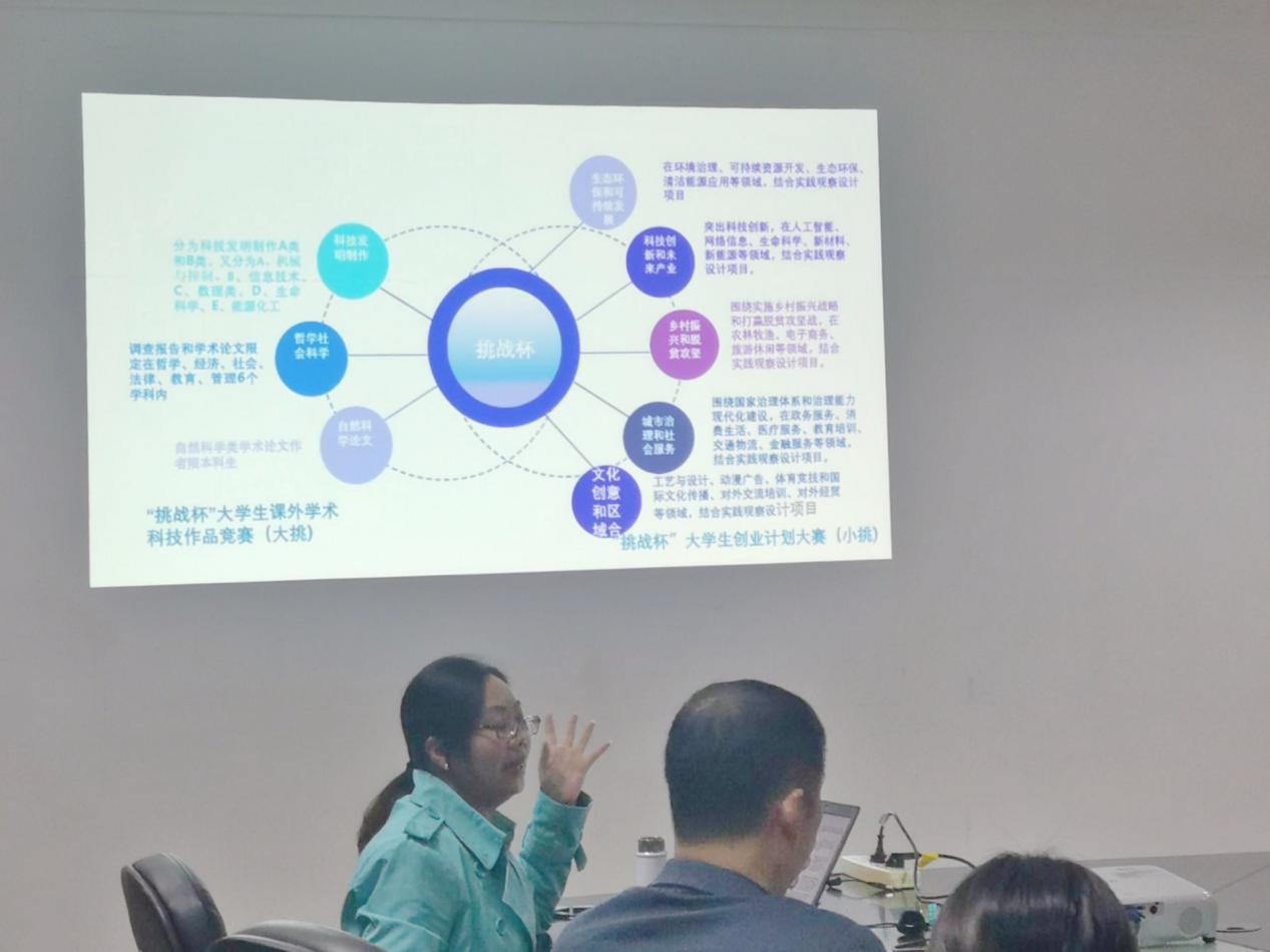 乔书记开篇向大家介绍了“挑战杯”大学生课外学术科技作品竞赛、“挑战杯”大学生创业计划竞赛和“互联网+”大学生创新创业大赛三项竞赛基本情况,深入阐述了三大赛的内在关联。乔书记向老师详细介绍了三项竞赛的备赛选题、参赛条件等细节性信息,就三大竞赛的参赛资格、参赛条件、以及竞赛选题进行了深入地探讨,耐心回答了老师的提问。
