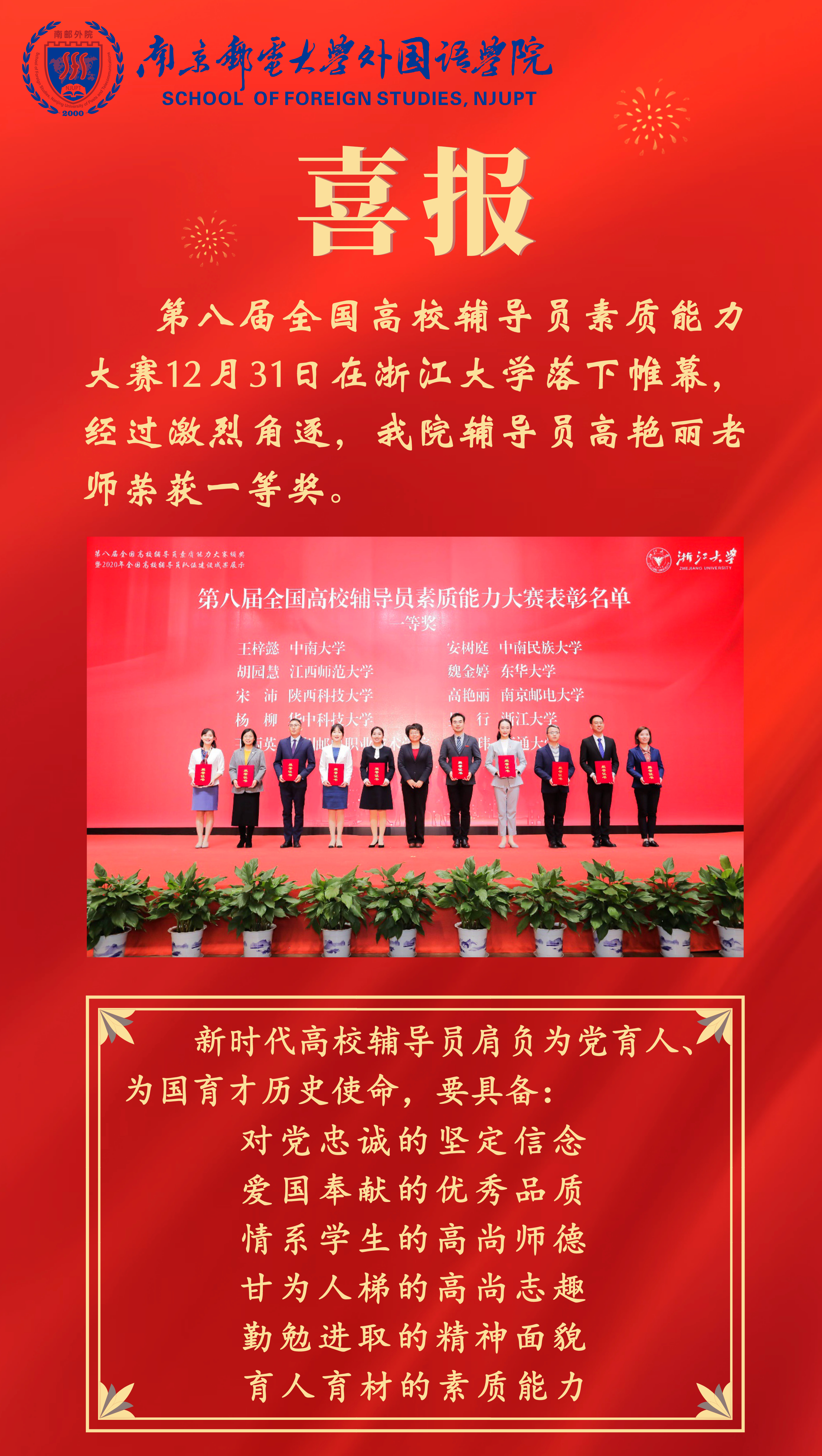 喜报:我院辅导员高艳丽荣获第八届全国高校辅导员素质能力大赛一等奖