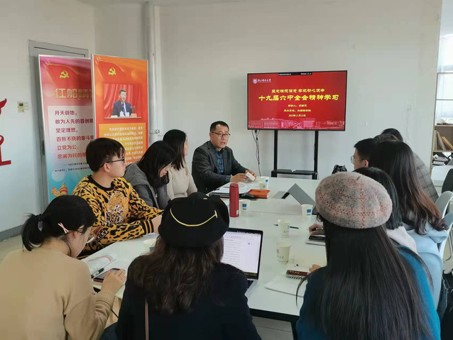 史献芝副院长从十九届六中全会召开的时间节点切入,解读了十九届六中全会对新时代党和国家事业发展、对推进实现中华民族伟大复兴历史进程中的重要意义。史院长详细介绍了《中共中央关于党的百年奋斗重大成就和历史经验的决议》七个部分主要内容和重大创新,并结合党史回顾,生动阐释了全面贯彻落实党的十九届六中全会精神的重要意义。在场辅导员、党员教师认真学习领会全会精神,积极互动,形成热学、热议全会精神的浓厚氛围。