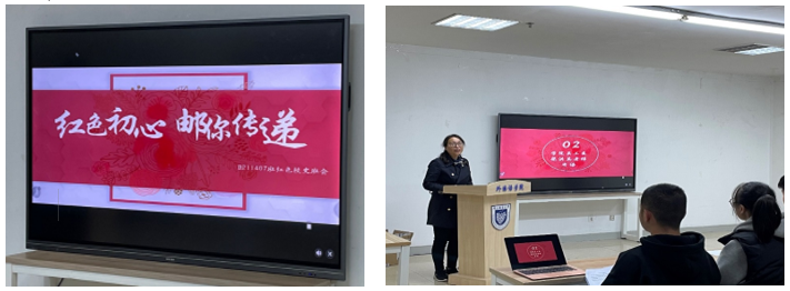 11月29日上午,外国语学院B211407班在圆楼521开展了“红色初心,邮你传递”红色校史主题班会,学院关工委梁洪英老师莅临指导,辅导员高艳丽老师和全体同学参加。