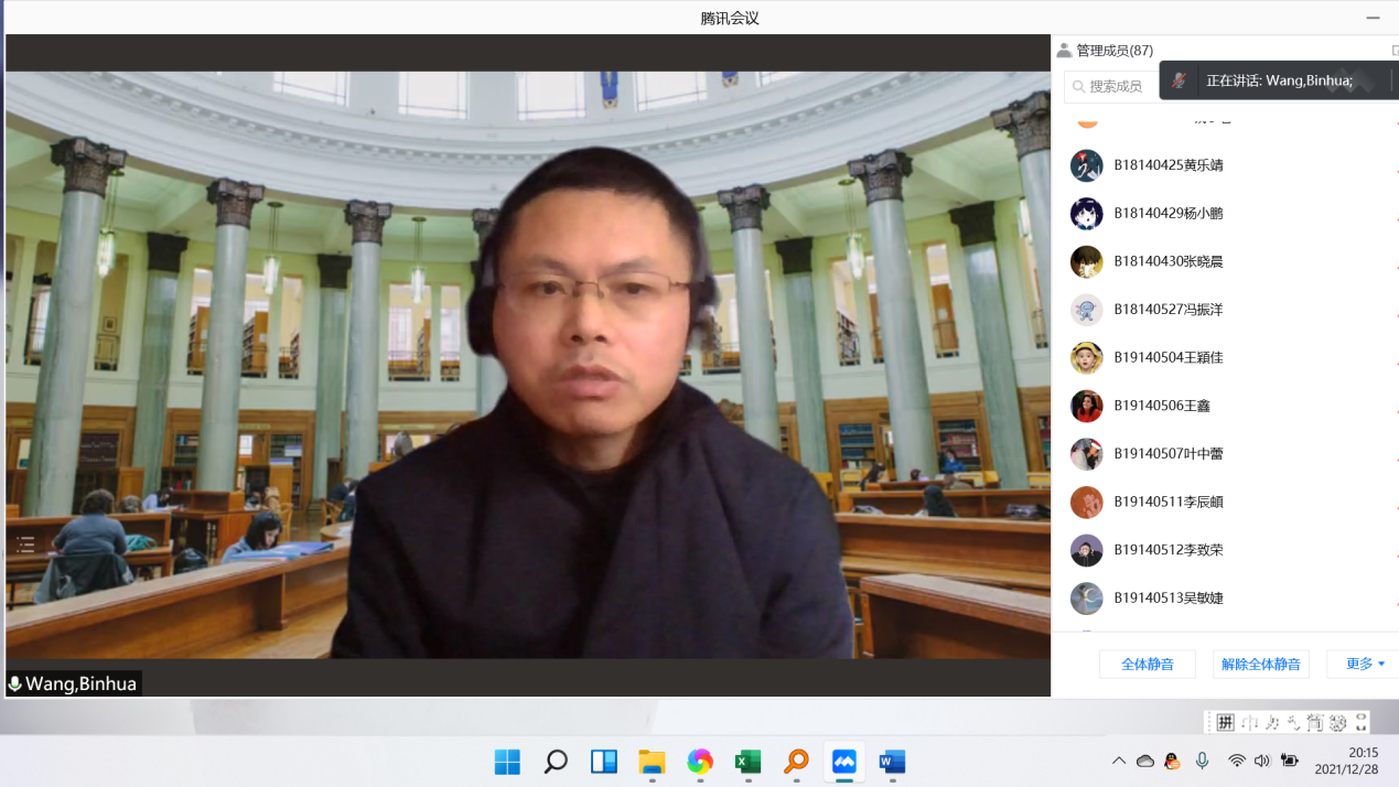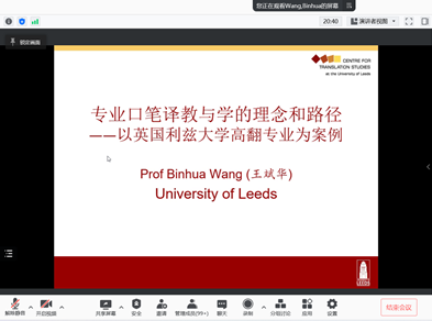 2021年12月28日,英国利兹大学王斌华教授应邀以线上的方式为我院师生讲学,主题为:专业口笔译教学的理念和路径——以英国利兹大学高翻专业为例。外国语学院部分教师、研究生和本科生聆听了该场讲座,院长助理陶李春致欢迎辞,翻译系副主任殷健主持。