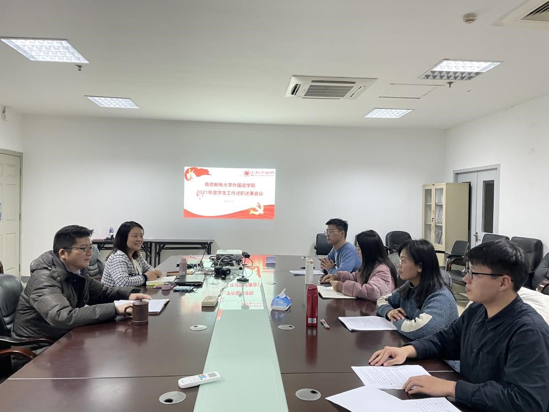 为深入推进外国语学院党风廉政建设,不断提升学院学生工作水平,2022年1月10日,外国语学院在圆楼420会议室召开2021年度学生工作述职述廉会议。外国语学院党委书记陈晓波及学院全体辅导员出席会议。会议由外国语学院党委副书记兼副院长徐欣娅主持。
