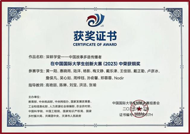 ▲中国国际大学生创新大赛(2023)国家级铜奖
