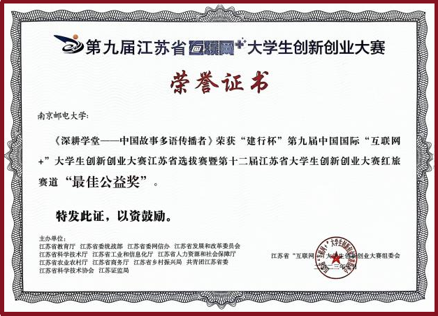 ▲中国国际“互联网+”大学生创新创业大赛江苏省“最佳公益奖”