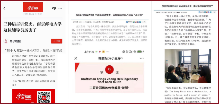 ▲ 深耕学堂受到学习强国、新华日报、南京日报等媒体报道