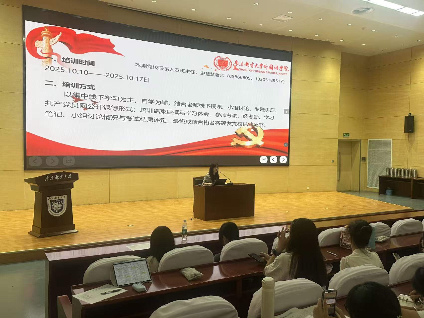 为深入学习贯彻习近平新时代中国特色社会主义思想和党的二十大、二十届三中全会精神,全面落实新时代党的建设总要求,切实加强入党积极分子培养教育,全面提升入党积极分子的政治素养和理论水平,筑牢党员发展工作的坚实基础,外国语学院党委于2025年10月10日至10月17日举办南京邮电大学第574期暨外国语学院第20期入党积极分子培训班。本次培训班共组织培训85名入党积极分子。