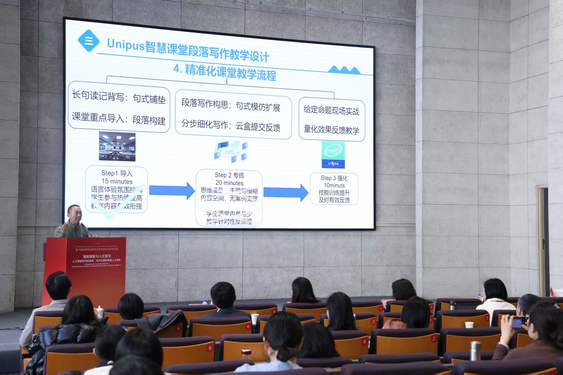 孙崀老师在本次研讨会上展示的示范课题目为“智慧云盒搭桥,互动教学增效:段落写作提升与强化”,孙老师以大学英语四六级段落写作为教学内容,借助UNIPUS智慧云盒与ITEST现场测试核心功能,尝试破解大学英语写作教学中的学生课堂写作参与度不足等痛点问题。此次示范课得到与会老师的一致好评,专家指出孙老师的教学理念新颖,能够和新时代教学手段相融合,值得借鉴推广。