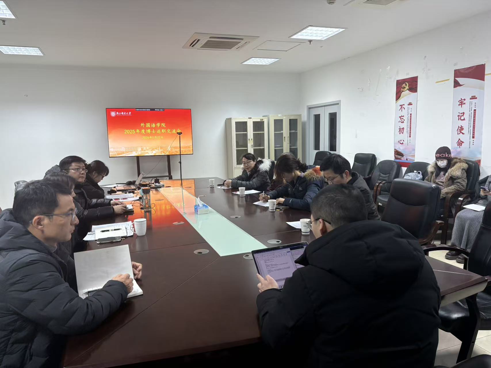 1月22日,外国语学院召开2025年度青年博士教师述职交流会。会议由学院党委书记陈晓波主持,院领导班子、教授代表、各系部主任、青年博士教师参加会议。