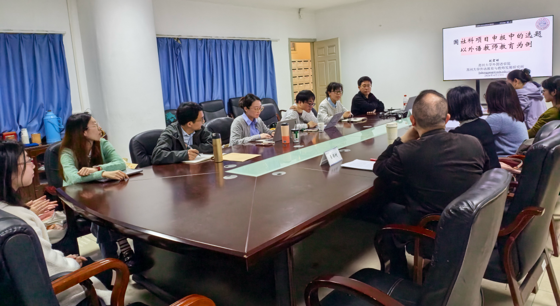 为提升教师科研能力与项目申报水平,助力学院科研高质量发展,英语系于2026年4月15日下午承办弘毅大讲堂专家讲座,特邀苏州大学特聘教授、外国语学院博士生导师刘宏刚作专题分享。讲座由英语系教师,学硕中心主任易保树主持,学院副院长洪洁出席讲座,学院各系部教师积极参加。