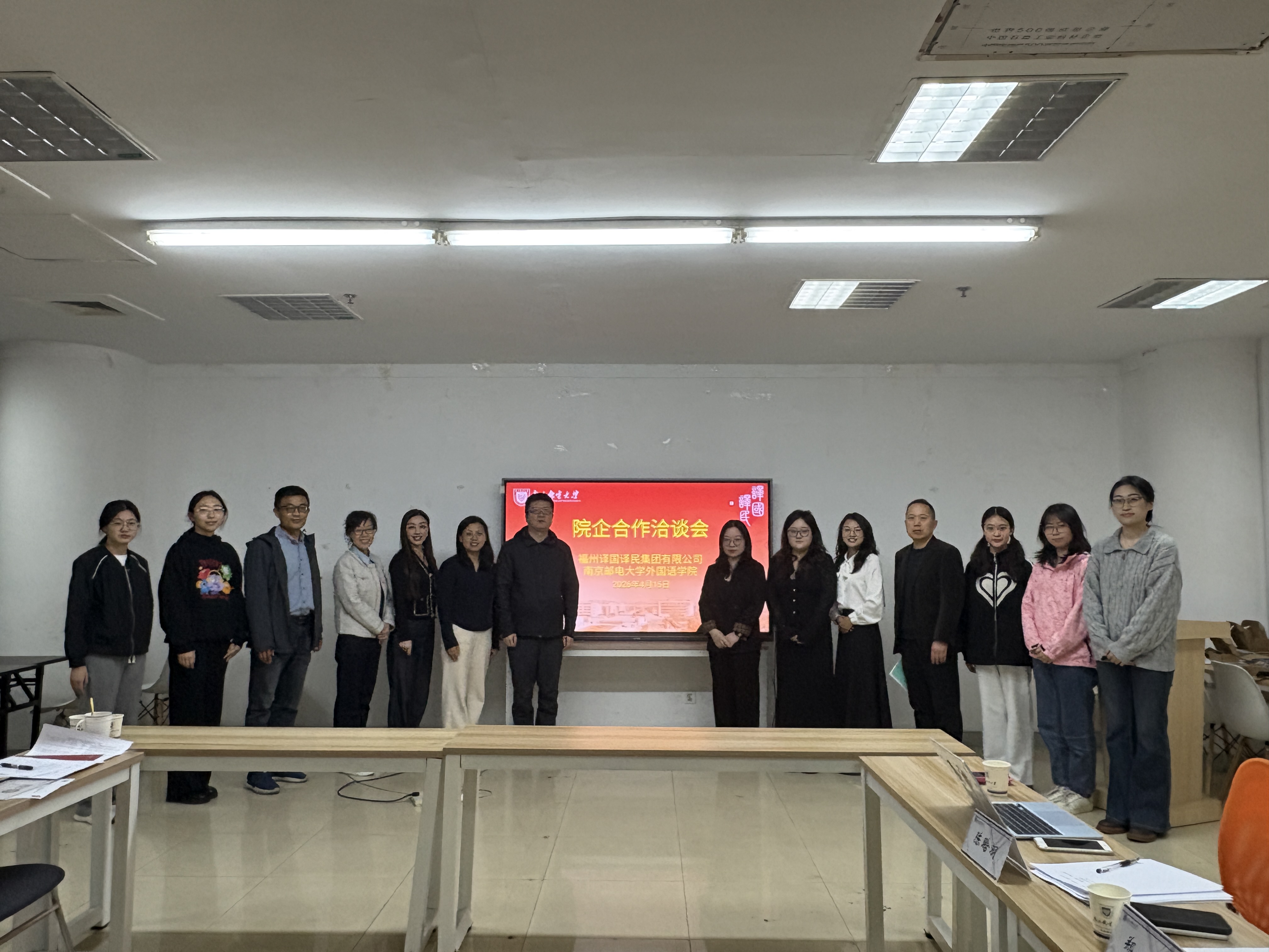 4月15日下午,外国语学院与福州译国译民集团有限公司举行院企合作座谈会,译国译民集团高校事业部总监郑莺、实习产品经理陈晗羽、校企合作经理陈惠梅、学院领导、系部主任、学生代表参加会议,座谈会由学院党委书记陈晓波主持。