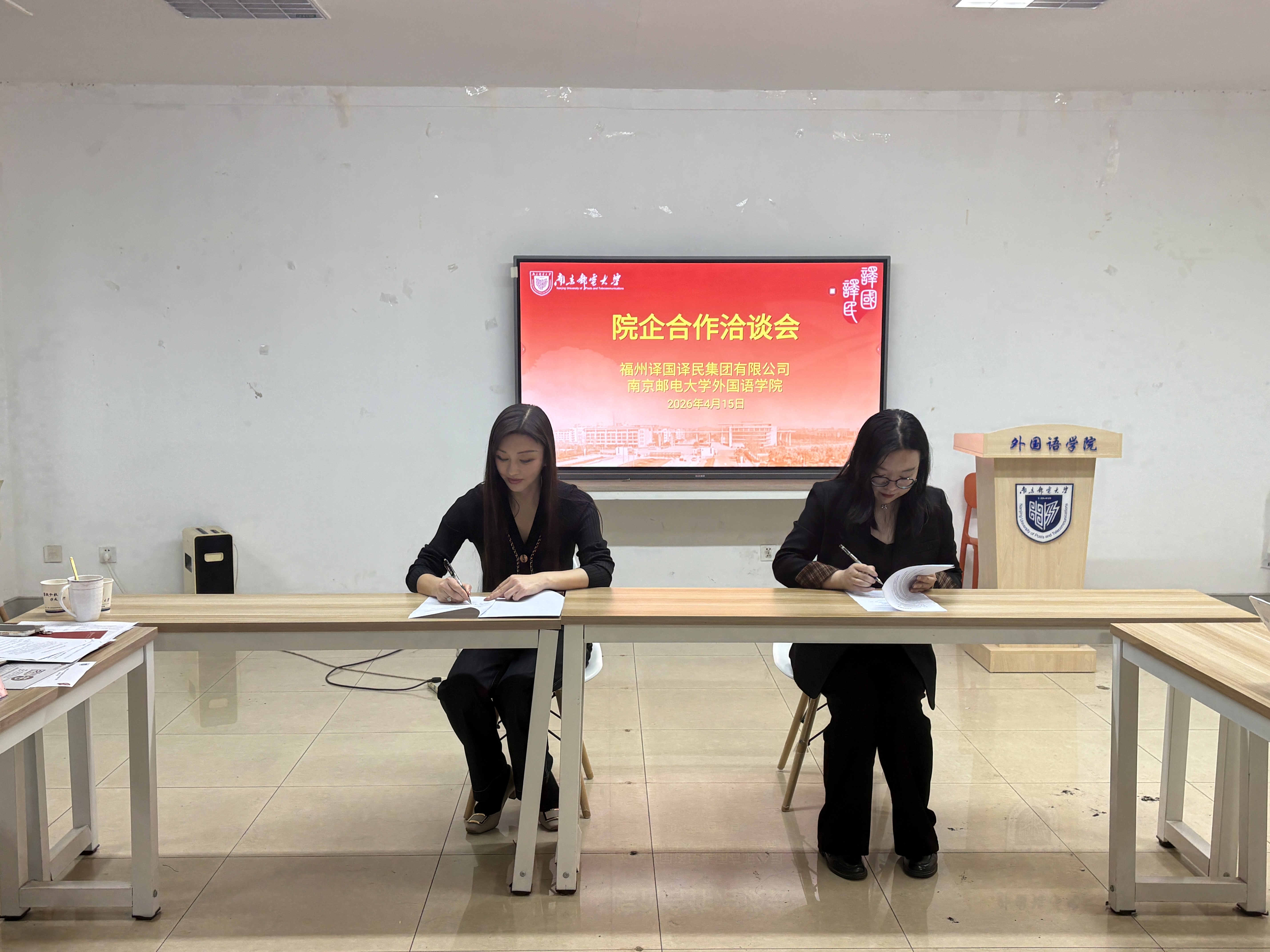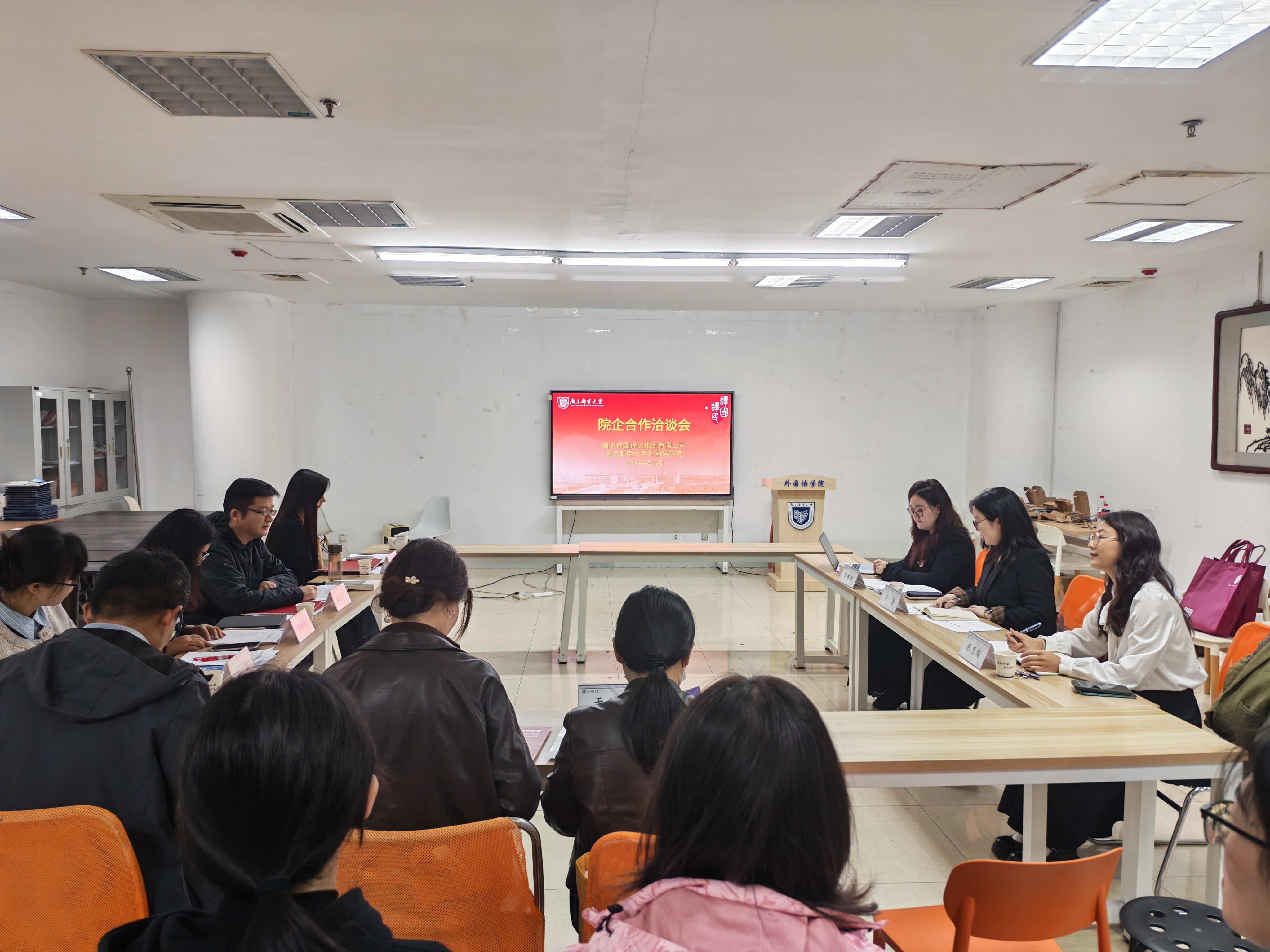 陈晓波对译国译民集团一行的到来表示热烈欢迎,并从学科布局、专业特色、人才培养成效等方面介绍了学院基本情况,表达深化产教融合、提升学生实践能力与就业竞争力的合作愿景。郑莺介绍了集团在校企合作领域的成果与规划,希望与学院在学科建设、语言服务复合型人才联合培养、学生实习实践、翻译技术培训、“双师型”教师培养等领域深化合作。双方就外语人才需求、实习就业对接和课程共建等进行了深入交流,并签署院企合作协议。